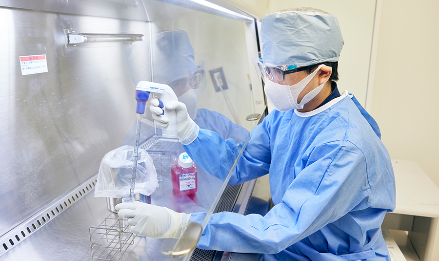 日本血液製剤機構:2019年に研究職として入社して以降、中央研究所に勤務しています。入社当初は蛋白化学研究室に配属され、遺伝子組換え技術により血漿タンパク質を産生するプロジェクトや、血漿タンパク質の精製法に関する研究に携わりました。その後、感染性病原体研究室へ異動し、現在は血漿分画製剤のウイルス安全性に関する研究に取り組んでいます。